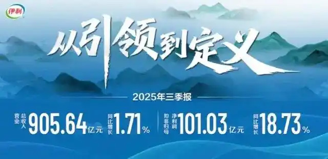 伊利股份發布2025年前三季度業績:報告期,公司實現營業總收入905.64億元,同比增長1.71%;扣非歸母凈利潤首超百億,達101.03億元,同比增長18.73%,公司主營業務韌性向上,勢頭穩健。